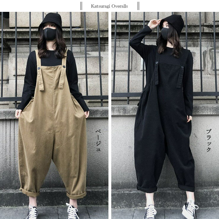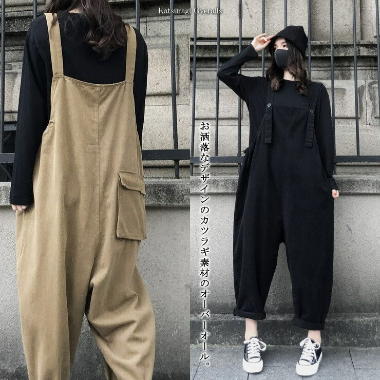 大きいサイズ レディース オーバーオール サルエルサロペット オールインワン カツラギデニム L LL 3L ブラック ベージュ 10代 20代 30代 40代 50代 11号 13号 15号 新入荷 ネコポス可